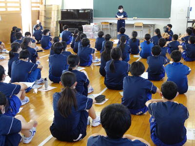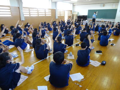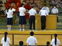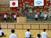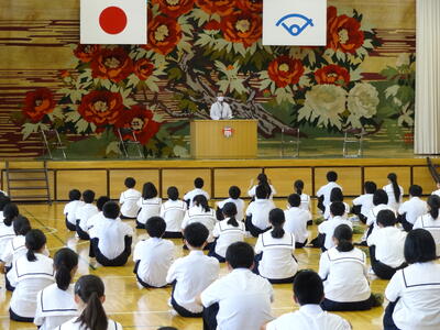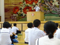 その後、生徒たちは、各学年・生徒会代表の反省発表や生徒指導担当の先生の話を真剣に聞き、夏休みを有意義に過ごしていこうと意識を高めました。
