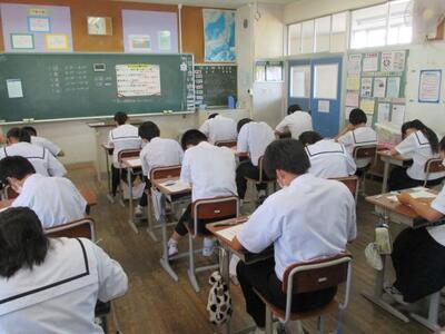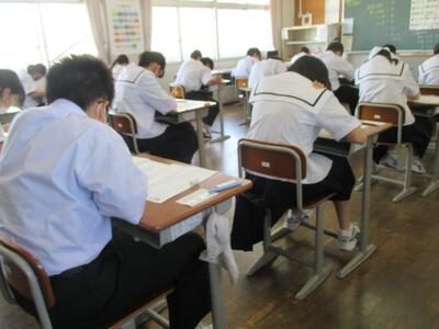 これまでの学習の成果を発揮しようと、1・2年生は真剣に受験していました。