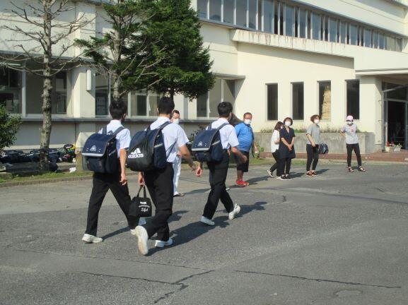 先ほど、吹奏楽部がいわき市のいわき芸術文化交流館アリオスで開かれる福島県吹奏楽コンクールに向けて出発しました。