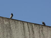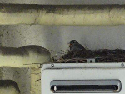 5月末頃から校舎の軒下に野鳥が巣をつくりはじめました。そして最近では、ひなが卵から孵ったようで巣の中にひなの頭や口ばしも見られるようになりました。時々、立ち上がって親鳥を待つ様子も見られます。夏休みに入り生徒たちの姿が少なくなったのに安心したようで、親鳥が頻繁に巣に飛んできてはえさを口移しに与えています。猛暑の中、ひなの食欲は旺盛ですくすく育っているようです。