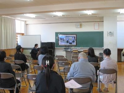 奇数の生徒の保護者 学年懇談会場で生徒の様子のスライド視聴