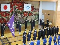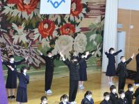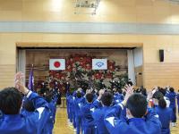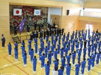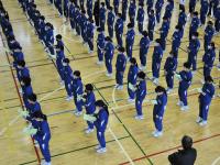4月26日(月)6校時、全校集会で今年度初めての応援練習を行いました。応援団のかけ声を中心に、校歌・応援歌・手拍子などの練習をしました。2、3年生は久しぶりの応援、1年生は初めての経験でしたが、徐々に歌声も拍手も大きくなりました。応援団のリーダーシップのもと、何度も練習を重ね、最後は、全校生の力強い応援が響き渡るようになりました。