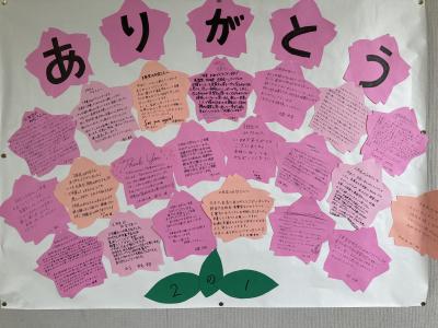いままで毎日美味しい給食を調理していただいた調理員さんや、給食の食材を学校に納入していただいた業者さんに御礼申し上げます。