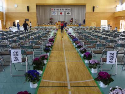 3月11日(木)午後、1・2年生が卒業式の会場づくりを行いました。生徒たちは部活動ごとに割り当てられた仕事をてきぱきとこなし、予定時間内に終了しました。中央体育館と3年生の教室・廊下などが、それぞれに心のこもった装飾がなされました。