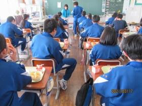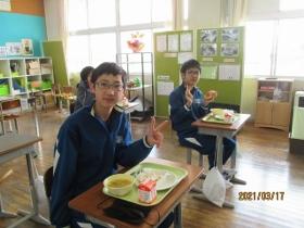 各クラスの最後の給食の様子を見て回りましたが、それぞれのクラスに特徴があり、1年間の学級の成長の跡が見られました。今日は、フルーツクリーム和えということで、いつも以上にお替わりや余った給食の争奪戦のジャンケンが各クラスで繰り広げられていました。