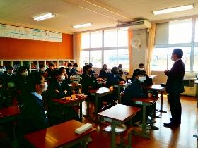 3月9日(火)4校時、中央体育館において同窓会入会式を行いました。お忙しい中、同窓会長の内藤祥一様にお越しいただき、お祝いの言葉や励ましの言葉を頂きました。生徒たちは、須賀川一中の卒業生としての自覚を深め、社会で活躍している先輩方のような人間になりたいと意識を高めたようでした。