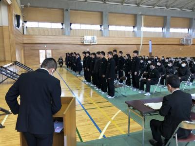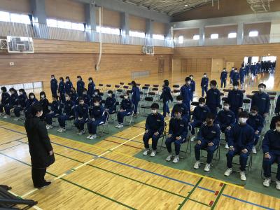 まず、コロナ禍でいろいろと苦労があった3年生の労をねぎらうとともに、最上級生として第一中学校をリードしてくれたことへの感謝を気持ちを伝えさせていただきました。