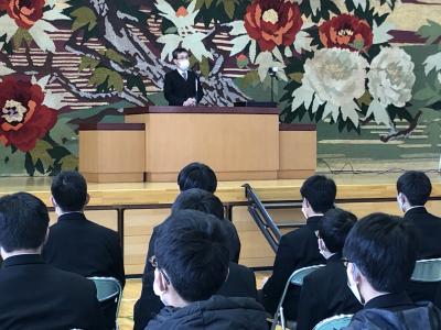 今週の金曜日に卒業式を迎える3年生ですが、今日の様子からも素晴らしい卒業式になることを確信した校長講話でした。