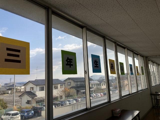3年生の卒業を間近に控えた今週、3年生の各クラスの廊下に、在校生からの3年生の先輩方への感謝に気持ちを込めたメッセージが掲示されました。