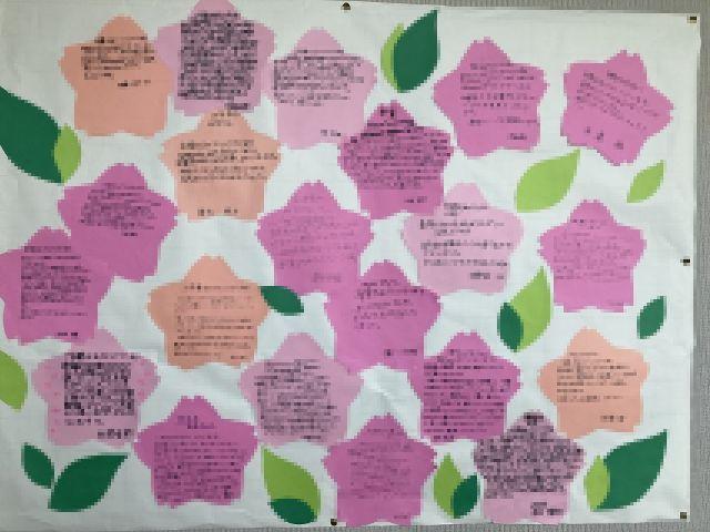 こんな在校生一人一人の温かい、そして力強いメッセージが桜の花びらとなって、3年生の廊下に花開いています。