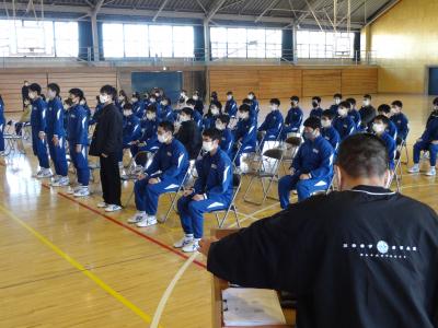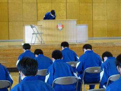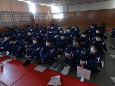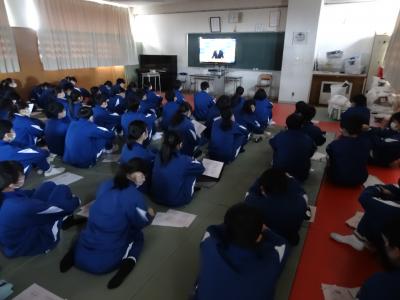 先週1月27日(水)6校時、3年生は卒業式に向けた学年集会を行いました。全員で過去の卒業式のビデオを鑑賞しながら、式の意義を理解したり、動きや式歌などを確認したりして志気を高めました。