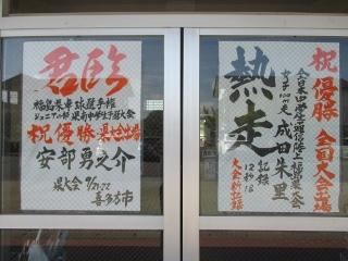 早速、本校職員が、その栄誉を讃えて、力強い筆さばきで昇降口にその結果を書いてくれました。