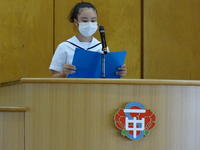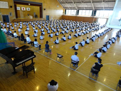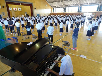 始業式では、校長先生の励ましの言葉や各学年代表の決意表明があり、生徒たちは今学期それぞれの目標に向かって充実した学校生活を送っていこうと意識を高めました。