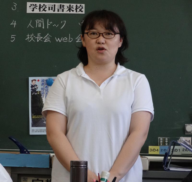 新型コロナウイルス感染症対策のために、2学期からスクール・サポート・スタッフとして、本田さおりさんが勤務することになりました。早速、プリントの印刷や配布、教室のドアノブやスイッチ等の消毒をしてくださりとても助かっています。これからよろしくお願いいたします。