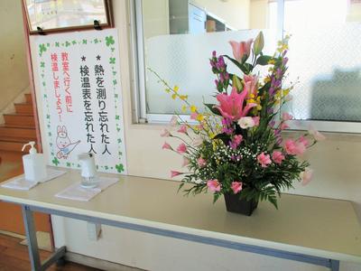 本校の生徒昇降口にきれいな花が飾られました。