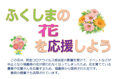 この花は、新型コロナウイルス感染症の拡大によりイベントが相次いで中止になったことで、福島県の花が使われなくなってしまったことを受けて、学校などの公共施設に花を展示・PRして、福島県の花を応援するため、福島県花き振興協議会より提供されたものです。