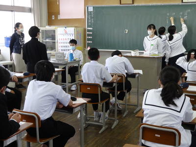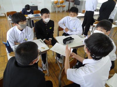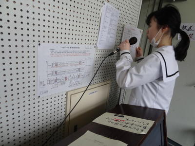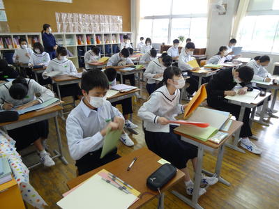 その後、校長先生が学校再開に向けたメッセージを全校放送で伝えました。校長先生の話を聞きながら生徒たちのやる気も一段と高まり、どのクラスでも1校時目の学級活動に熱心に取り組んでいました。