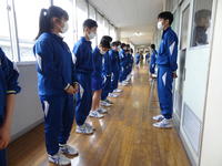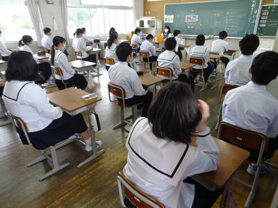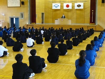 5月21日(木)4校時、第1回避難訓練を行いました。今回は、「授業中、大地震が発生し,危険があるため速やかな避難を要する。」との想定で行いました。生徒たちは、緊急放送を静かに聞き、担任の指示に従って落ち着いて静かにに体育館に避難しました。最近、小規模の地震が頻繁に発生してします。校長先生の講話や教頭先生の講評は生徒たちの心に響いたようで、生徒たちは「正確な情報把握をして冷静に対応する必要がある」と防災意識を高めました。