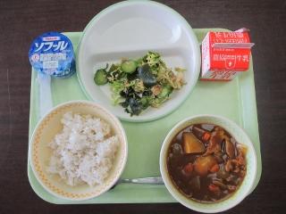本日の給食メニューは、麦ごはん・牛乳・ポークカレー・海藻サラダ・ヨーグルトでした。生徒たちは久しぶりの給食の味を噛みしめながら食べました。そして、給食でエネルギーを補給し、午後の授業に臨みました。