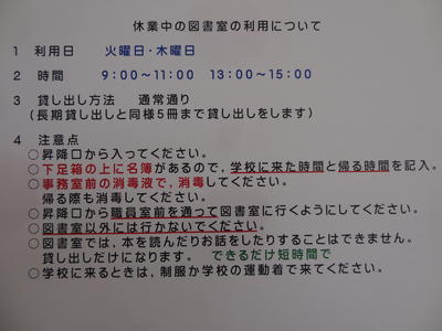 4月10日(金)のHPで図書館の利用についてお知らせしたところですが、早速、本日4月14日(火)9時の開館と同時に、読書好きな生徒数名が本を借りに来てくれました。読みたい本がいっぱいあり、複数冊借りていく生徒もいました。