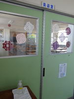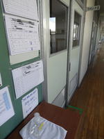 過日、全職員で校舎内の消毒をしました。今回は、保健の先生が中心となり、普通教室をはじめ特別教室や体育館・トイレなど全ての入り口に手指消毒用アルコールを設置しました。