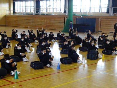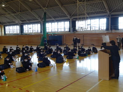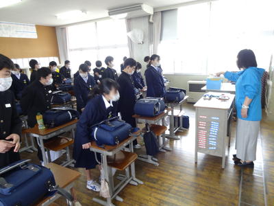 生徒たちは不自由な生活が長期化しており心身の健康状態が少し心配でしたが、元気なあいさつや笑顔での会話が見られたので一安心しました。生徒たちには学習課題の提示をするとともに学習・生活計画表を配布しました。計画表に基づいて規則正しく有意義な生活が送れますよう御家庭でも見守っていただきたいと思います。