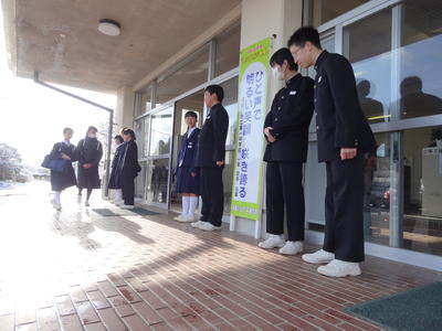 本日3月14日(木)より、1・2年生での学校生活が始まりました。今朝は時期はずれの雪が降りましたが、昇降口では生徒会役員と自治班員によるあいさつ運動が行われ、生徒間で元気なあいさつが飛び交っています。生徒たちはいつもと変わらず落ち着いた生活を送っていました。来週3月22日(金)の修了式まであと少しになりましたが、残された日々をしっかりとした気持ちで生活していくことが進級に向けて大切になってきます。