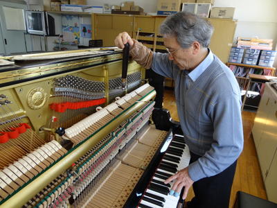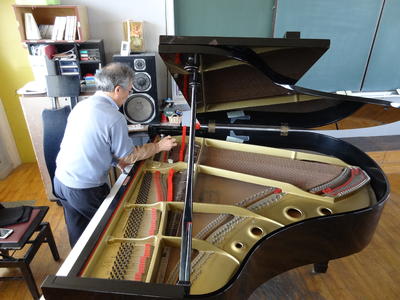 3月20日(水)10:00、調律師さんが来校し、ピアノの調律を行いました。本校には3台のピアノがありますが、体育館においてあるグランドピアノは、過日行われた卒業式に向けて事前に調律を済ませました。本日は、音楽室においてあるグランドピアノと被服室においてあるアップライトピアノの調律を行いました。音楽の授業をはじめ合唱部の活動や秀麗祭などの行事で大活躍しているピアノですが、1年間弾き続けると、音色も微妙に変化するそうです。ピアノの調律は繊細な作業が必要で一台当たり約2時間かかりました。これから3台のピアノはまたきれいな音色を校舎内外に響かせてくれます。