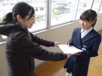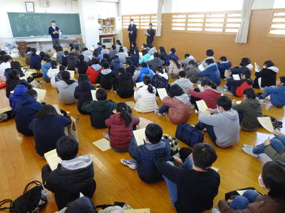 5校時の学級活動の時間では、生徒一人一人が担任から温かい言葉をかけてもたいながら修了証書をもらいました。生徒たちは現状に満足することなくさらに高みを目指して生活していこうと気持ちを引き締めていました。