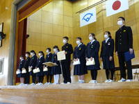 まず、表彰伝達では、運動面や文化面での一中生の活躍が認められ、多くの生徒の功績が表彰されました。