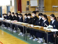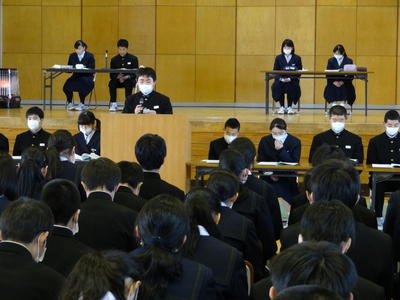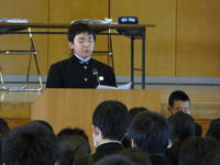 その後、後期生徒会総会を行いました。生徒会執行部・各専門部・各部活動の代表から今年度1年間の活動に対する細かい反省がなされる一方、一般生徒から建設的な質問・意見・要望がたくさん出され、生徒全員で今年度の反省と次年度に向けた有意義な話し合いがなされました。一中生徒会がさらに盛りあがるよう、生徒一人一人がこれまで以上に意欲を持って活動していきましょう。