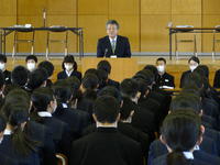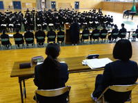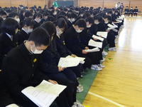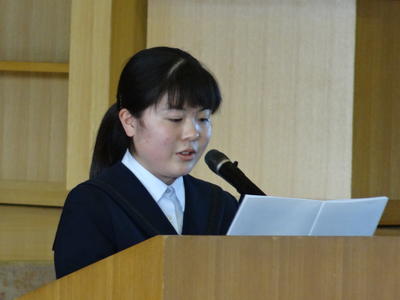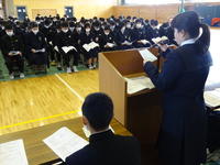 最後に、「社会を明るくする運動」作文コンテストで福島県推進委員会優秀賞を受賞した根本晴生君(3年)と「明るい社会づくり」作文コンクールで県知事賞を受賞した藤井花さん(3年)が全校生に向けて作品の朗読をしました。生徒たちは自分の日常生活での経験を思い起こしながら静かに聞き入っていました。