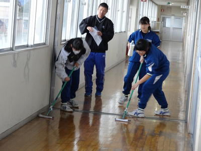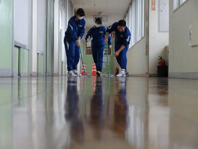 2月20日(水)放課後、各学年の生徒会整美部員が廊下のワックスがけをしました。ボランティアで手伝ってくれる生徒もいてとても助かりました。生徒たちの丁寧な作業のおかげで、校舎内の床がワックスできれいになりました。これで今年度のワックスがけは終了です。これからの清掃では雑巾で床をしっかり磨いて、明るくきれいな環境の中で生活していきましょう。