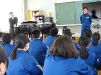 冬期間の清掃は気温が低い中で行うのでとても大変ですが、どの清掃区域でも生徒たちは熱心に活動しています。1月29日(火)、本年度最後の清掃ローテーションを行いました。各清掃区域の班長は3年生から2年生に引き継がれました。3年生のアドバイスを受けながら2年生が班員をしっかりまとめていきましょう。