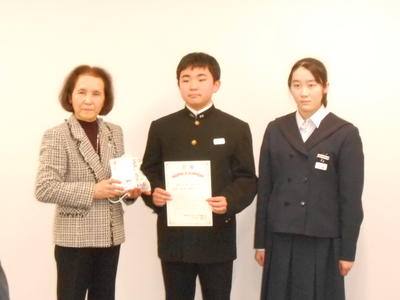 早速、2月4日(月)放課後、生徒会長の杉山匠磨君とJRC部副部長の武藤真凛さん が顧問の津金令子先生とともに須賀川地方ユネスコ協会事務局(会長 岩田悦次郎様)に赴き、副会長の八木沼智惠子様に募金とはがきを届けてきました。
