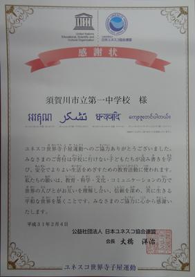 一中生のみなさん、1月21日(月)~2月1日(金)まで生徒会JRC部が行っていたユネスコ世界寺子屋運動募金と書き損じはがき回収に御協力いただきましてありがとうございました。おかげさまで、募金総額は25,465円に達し、JRC部が掲げていた「昨年の実績を超えよう!」という目標を大幅に上回ることができました。