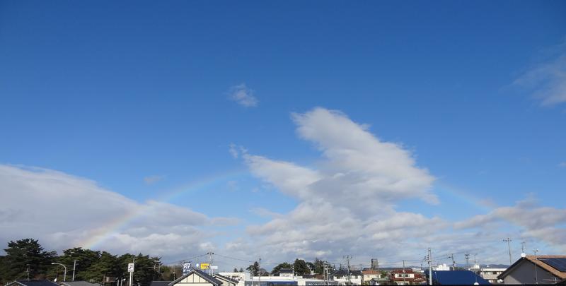 なんと、2階の流し場の窓からきれいな冬の虹が空にかかっているのが見えました。最近受験に向けた面接練習や願書書きでピリピリしている3年生にとってはホッとするひと時だったようです。