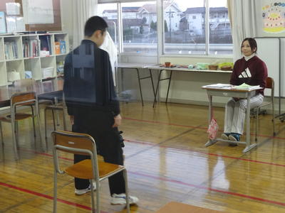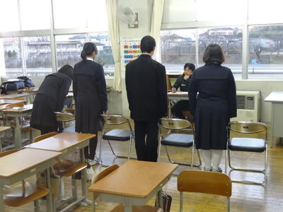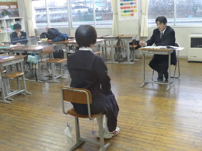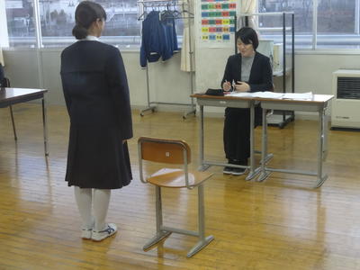 12月12日(水)まで、3年生たちは学年担当教員による面接練習を進めてきました。12月13日(木)からは、私立高校受験予定者を中心に教頭や3学年授業担当者により、本番を想定した面接練習が始まりました。生徒たちは、個人面接や集団面接などいろいろ経験して、少しずつ面接の雰囲気にも慣れ受け答えも上手になってきました。