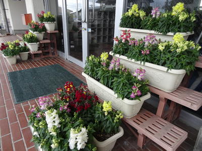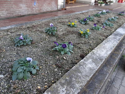寒さに強い金魚草やビオラの色とりどりの花が生徒たちの学校生活に潤いを与えてくれています。そして、しっかりと土の中に根をはり寒さに立ち向かう姿が生徒たちにやる気を与えています。この草花は、春まで咲きほこるそうです。