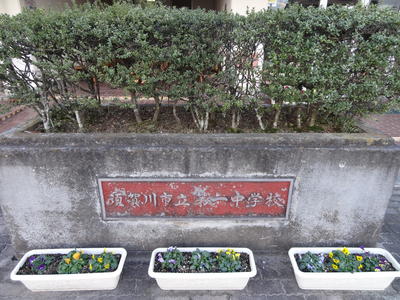 一中の敷地内を春から秋まで華やかに彩った草花たちが影を潜め、日増しに寒さも増しちょっともの寂しい感じがしていました。そんな中、最近生徒昇降口前の花壇やプランター、職員玄関入り口付近のプランターが花盛りです。この草花は、用務員の村越さんが、草花の少ないこの季節に向けて、自宅で8月頃に種を蒔いて大切に育てた苗を学校に持参して移植してくれたものです。