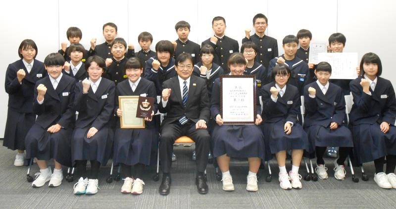 12月18日(火)放課後、市役所で東北中学校新人大会出場教育長報告会が行なわれました。本校の近藤らら選手(2年)は秋に行われた岩瀬支部中体連新人バドミントン大会女子個人シングルスで優勝、続く県中地区中学生新人バドミントン大会で2位、そして福島県中学生新人バドミントン大会ではベスト8入りを果たし、東北中学校バドミントン選手権大会出場権を獲得しました。報告会では森合義衛教育長から激励の言葉をいただき、近藤らら選手は東北大会での活躍を誓いました。