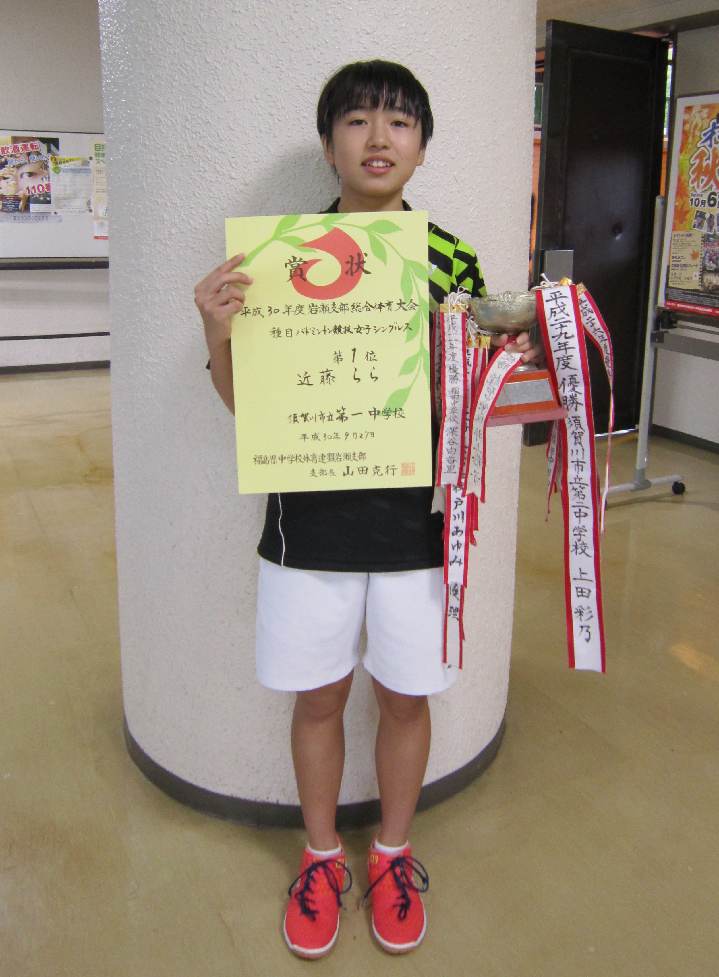 バドミントン女子個人シングルス 近藤らら 1位(県中大会出場)