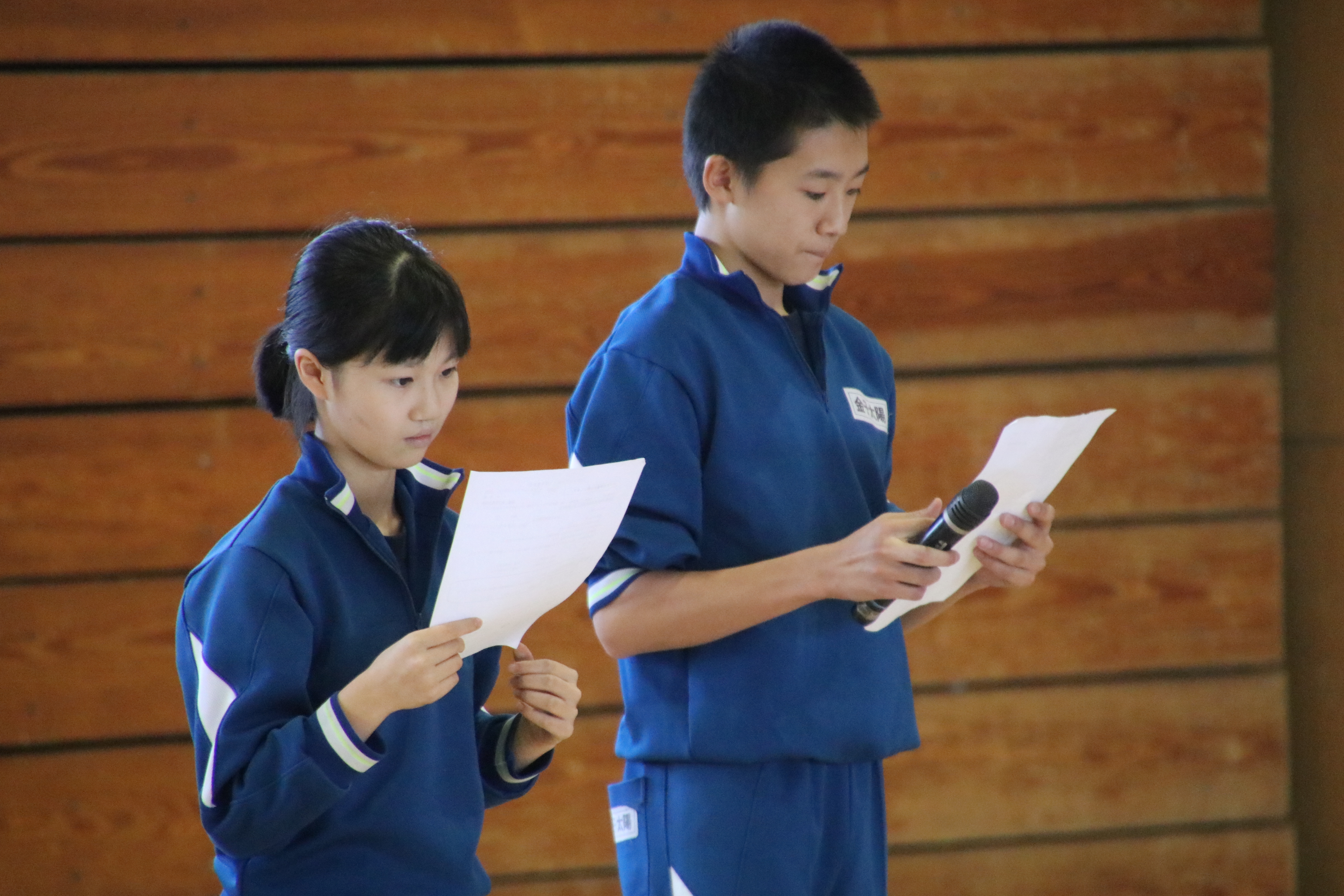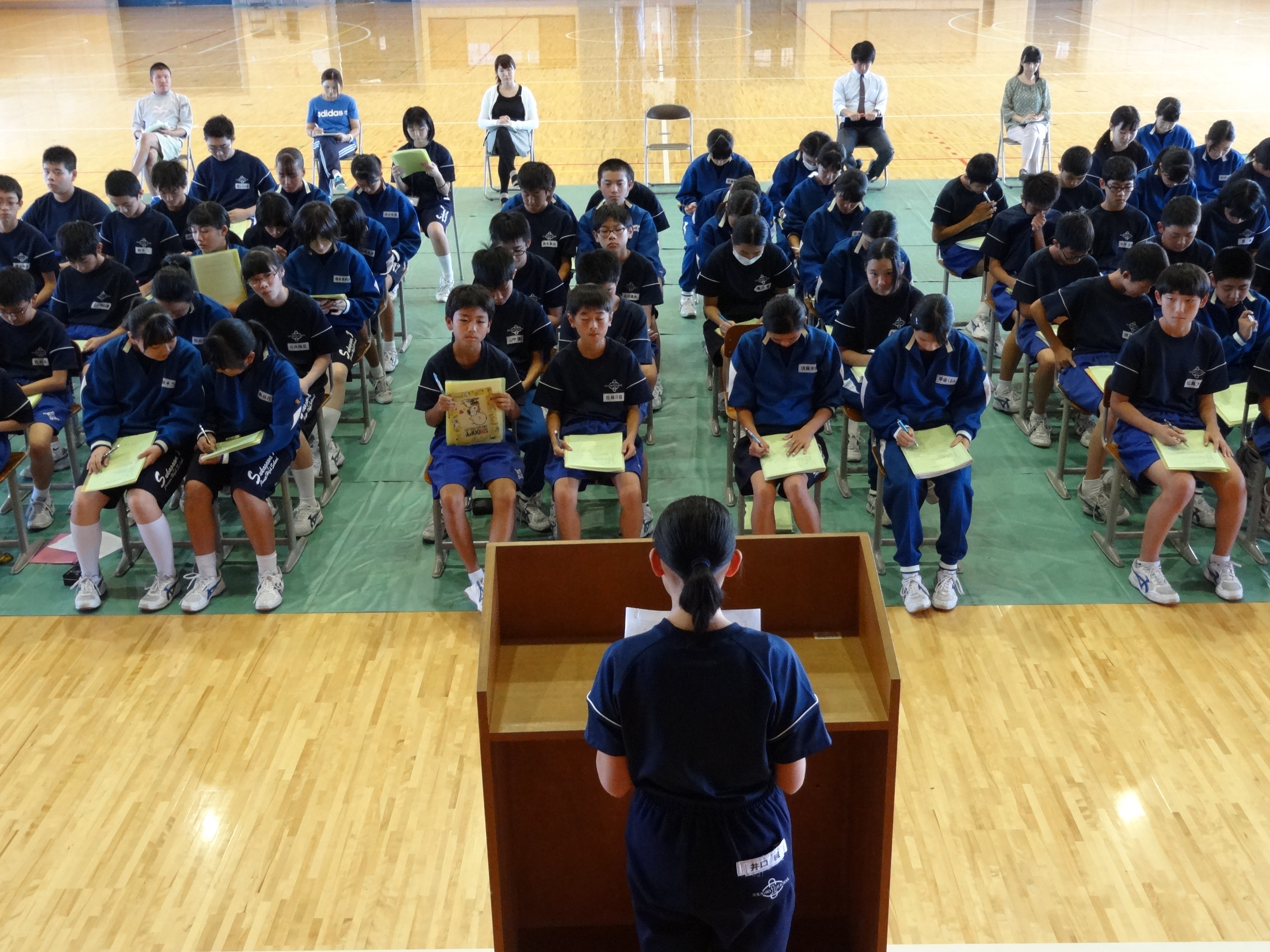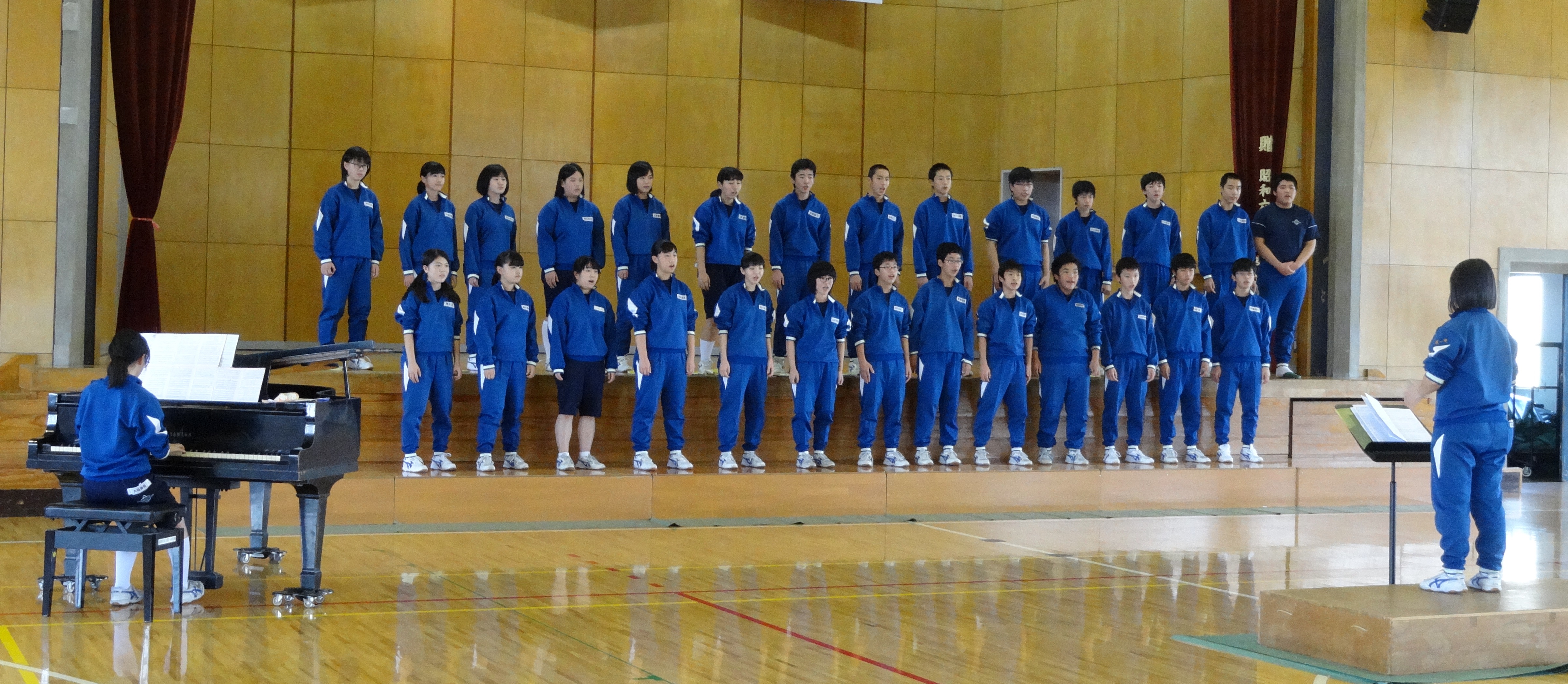 本日10月9日(火)、各学年で合唱中間発表を行いました。生徒進行のもと、各学級の代表が合唱に込めた思いを堂々と発表した後、体育館のステージ上で各学級が練習の成果を披露しました。また、他の学級の仕上がり具合をチェックすることができ、生徒たちのボルテージも上がってきています。残りの期間で、どれだけ進化を遂げられるかとても楽しみです。どの学級も最優秀賞を目指して頑張りましょう。