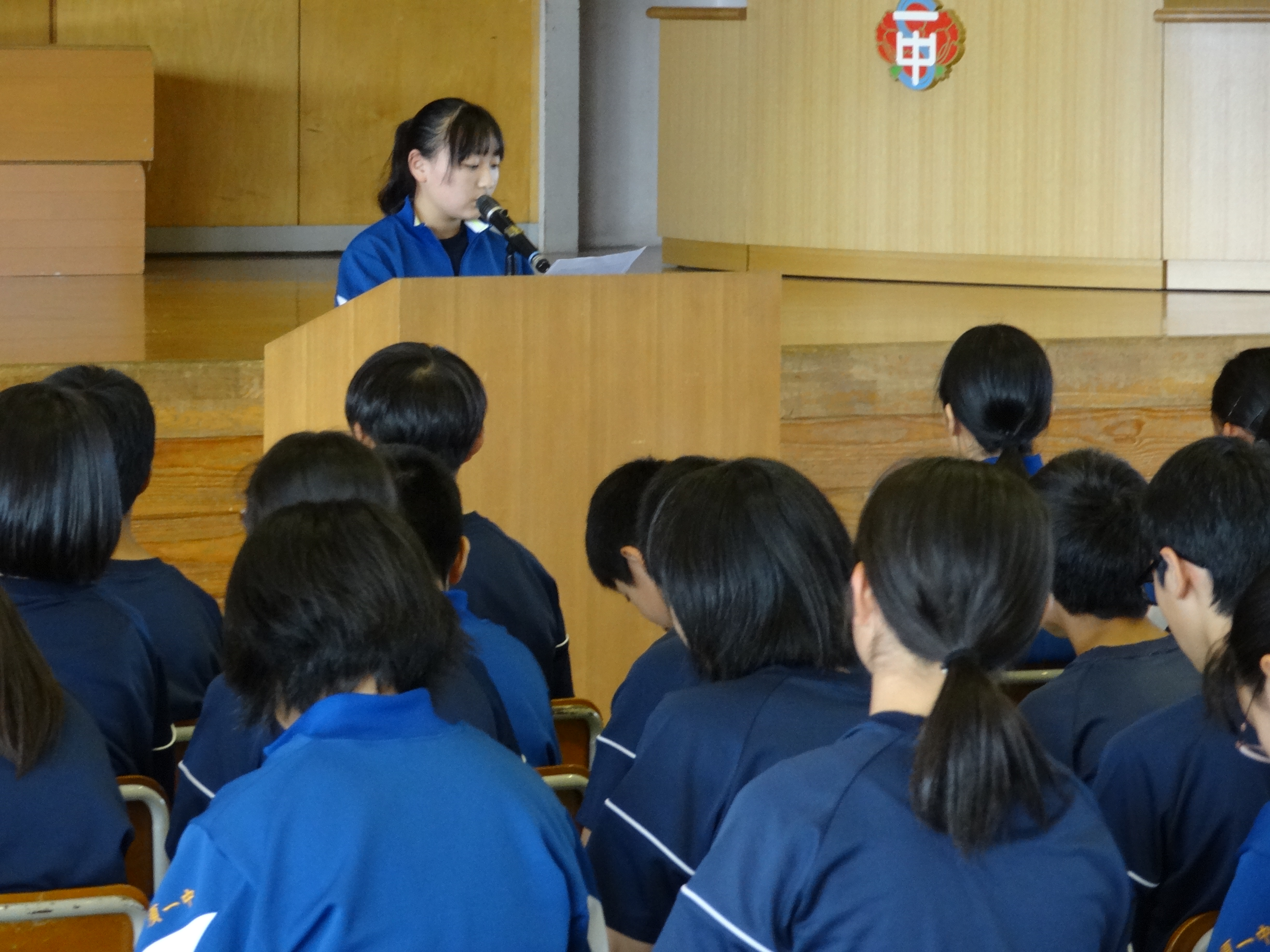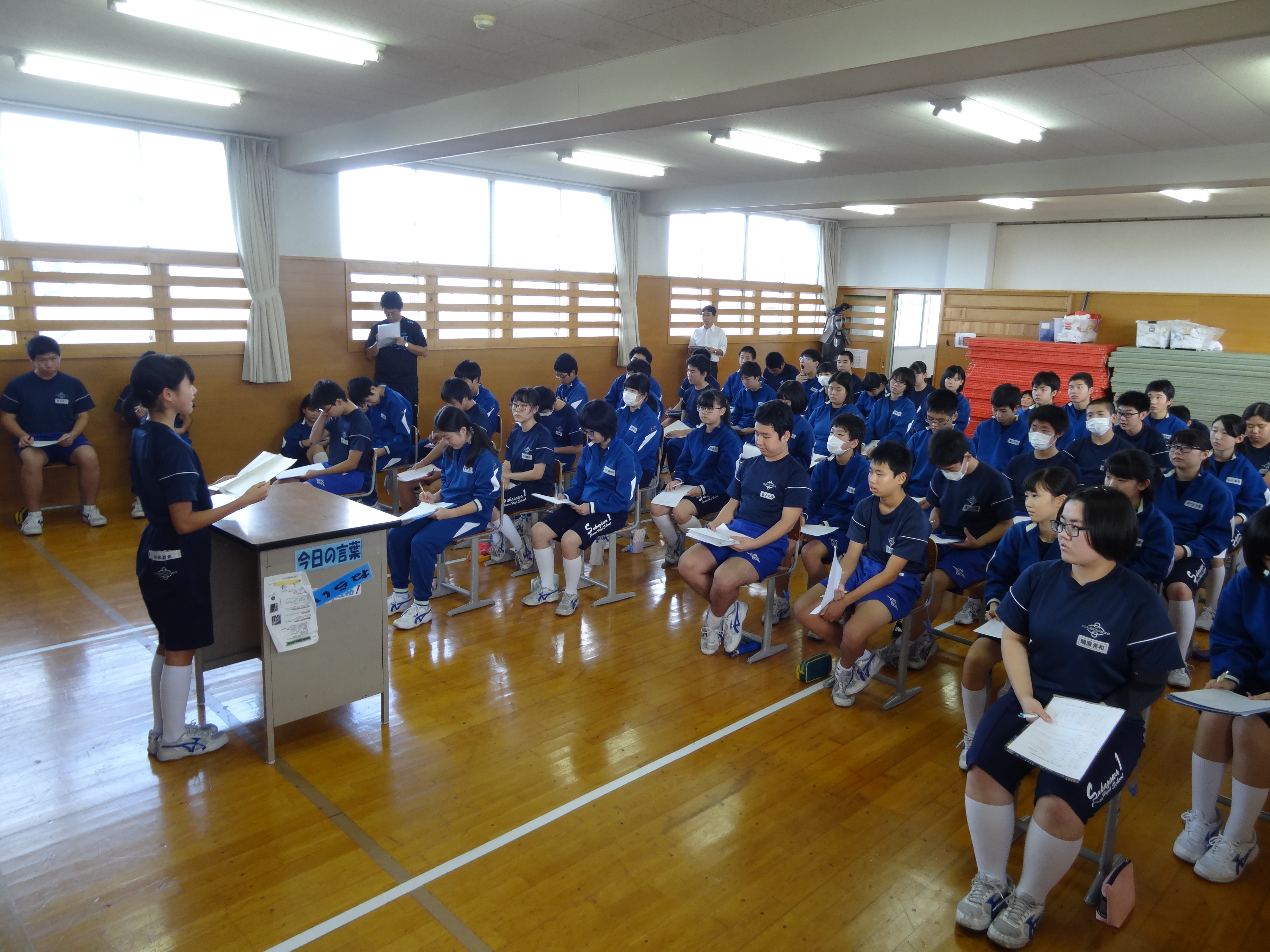 10月2日(火)6校時、1学年と3学年では秀麗祭意見文コンクールに向けた学年代表を決める意見文発表会を行いました。各学級から選抜された代表者たちは、学年代表の座2枠を目指して全員堂々とした態度ですばらしい発表をしました。一方、発表を聞く生徒たちは発表者をしっかり見つめ、熱心に採点を行っていました。2学年は明日10月3日(水)6校時に同様の発表会を行います。