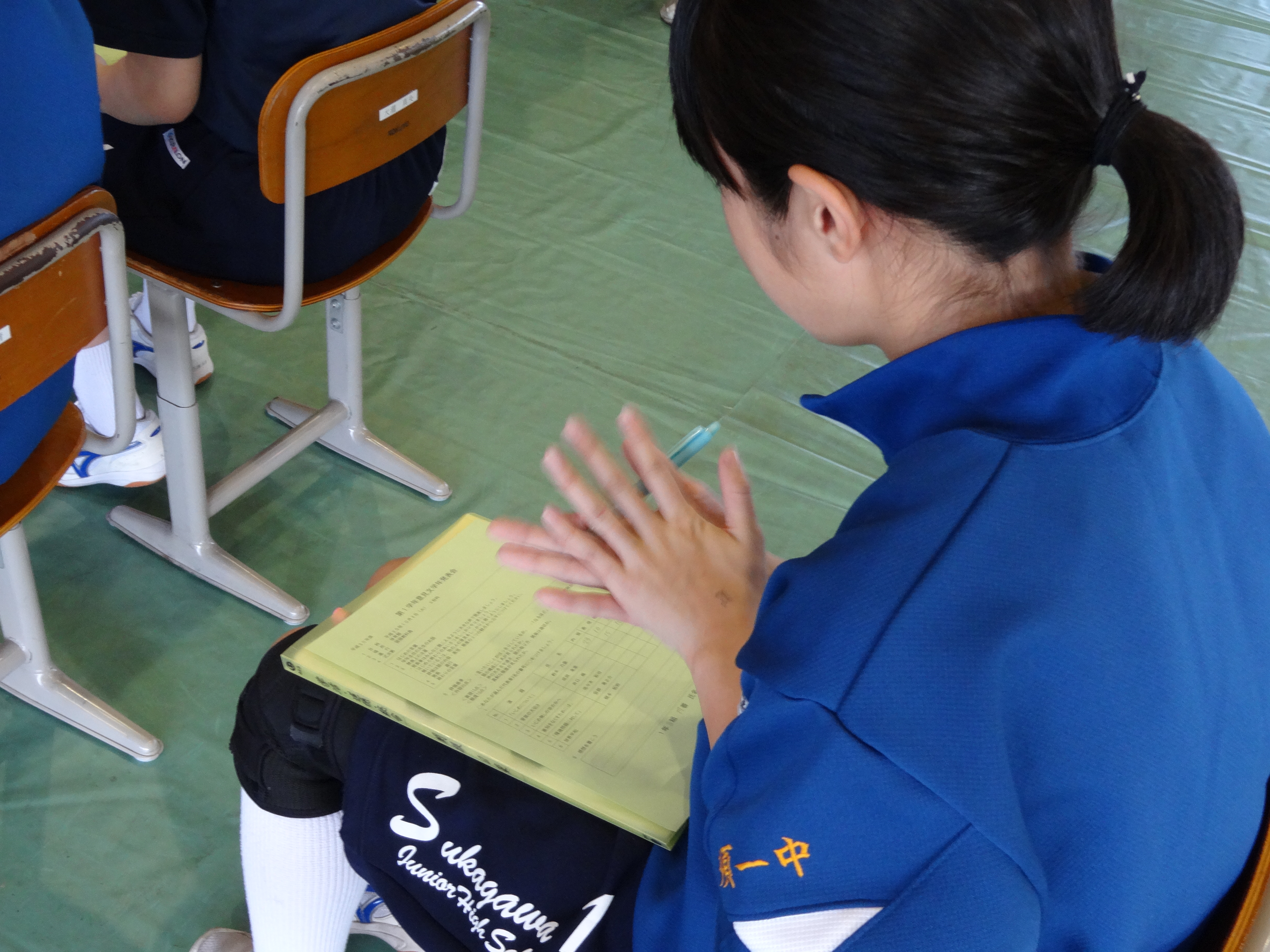 10月2日(火)1・2校時、前期技能教科テストを行いました。音楽、美術、保健体育、技術・家庭の4教科のテストで、各教科25分間ずつで行いました。1年生にとっては初めての技能教科のテストだったので、少し緊張しているようでした。