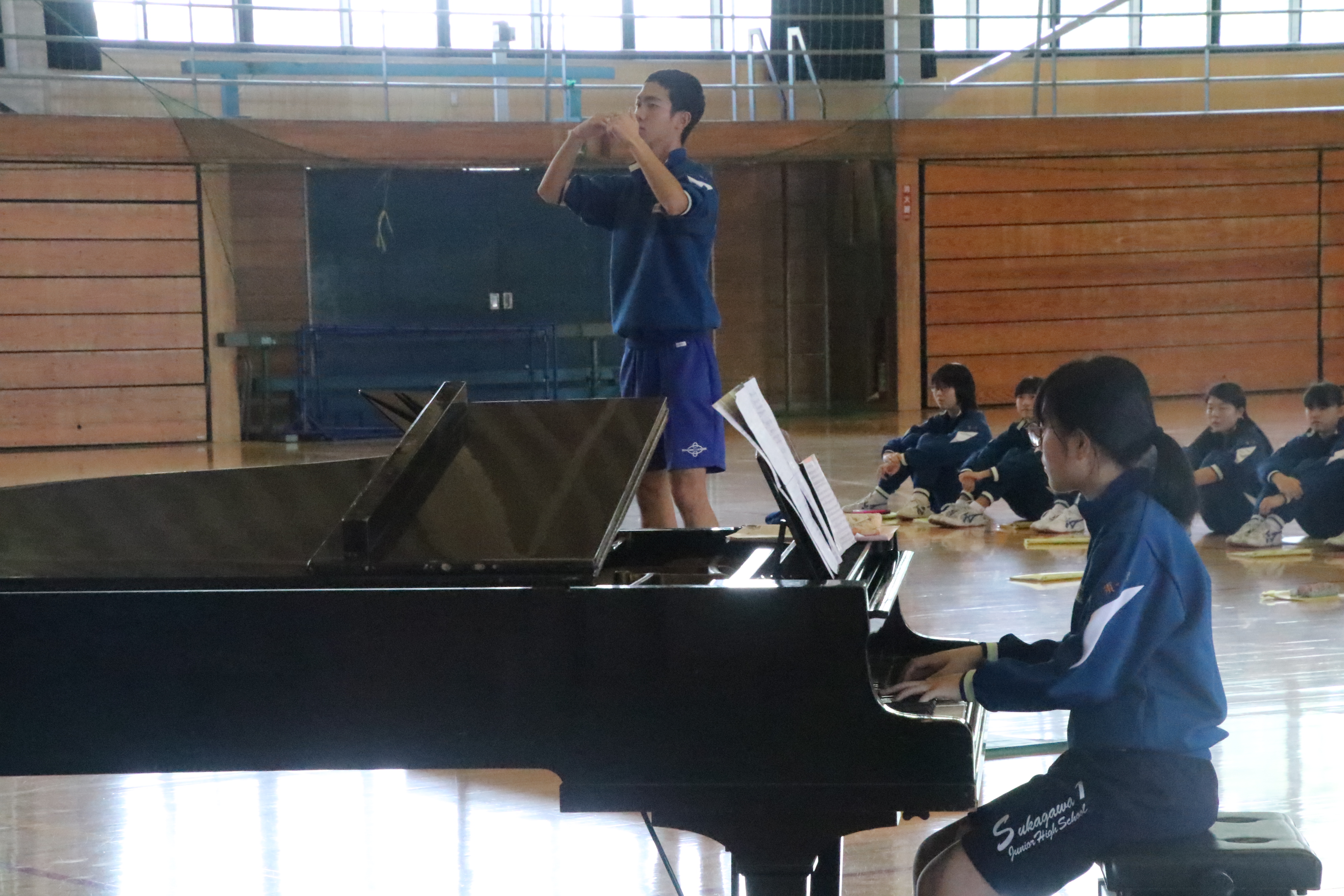 秀麗祭校内合唱コンクールに向けて、朝・昼休み・放課後、教室をはじめ校舎のあちこちから各学級の元気な歌声が聞こえています。特に、昼休みと放課後は音楽科の練習計画に従って、指定された場所に集まって熱心に合唱練習に取り組んでいます。