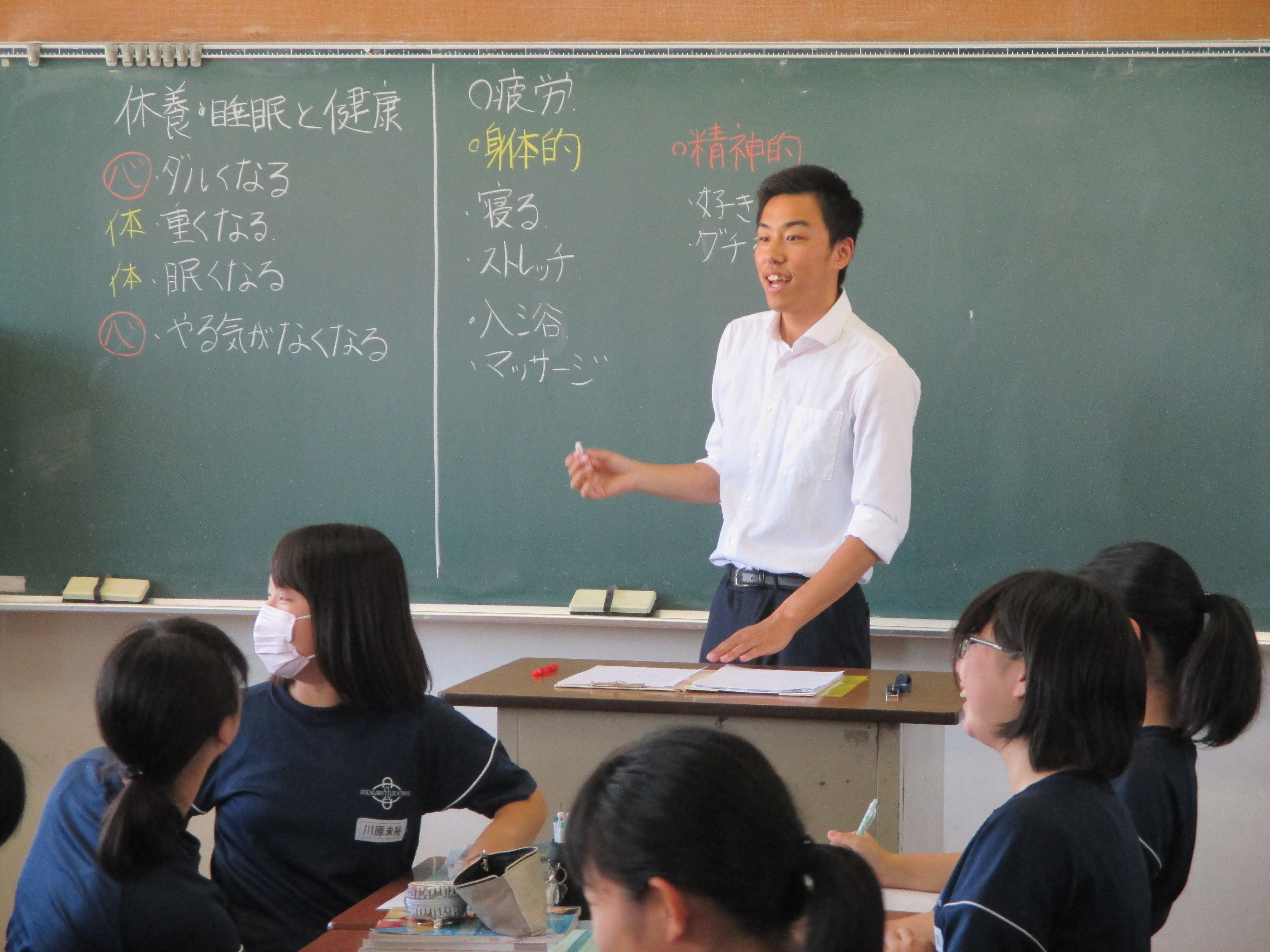 本日6月8日(金)で、根本 彩菜 先生の3週間の教育実習が終わりました。授業に熱心に取り組む一方、休み時間や放課後は積極的に生徒たちの中に入り、勉強の話をしたり、一緒に部活動をしたりして生徒たちから慕われる存在になっていました。帰りの学活時、クラスで先生とのお別れ会をしましたが、生徒たちは先生との別れを惜しんでいました。