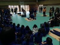本日6月9日(木)6校時、不審者対応教室を行いました。今回は、3年生の教室に不審者が侵入したという想定で訓練を行いました。そして、訓練の様子をビデオに撮影しておき、体育館に避難した全校生で訓練内容を確認しました。その後、須賀川警察署生活安全課の3名の方が、①訓練の様子から校内に侵入した不審者に対する対処法 ②校外で遭遇した不審者に対する対処法等について実演を交えながら話をしてくださいました。子どもたちはいつにもまして真剣な眼差しで署員の方の話に聞き入っていました。
