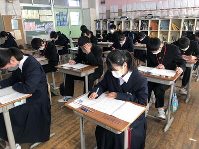本日、3年生対象に4回目の実力テストを行いました。松明運搬出発式や期末テストを間近に控え何かとせわしない中ですが、3年生はしっかり気持ちを切り替えてテストに臨んでいました。