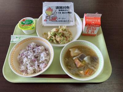 今日の給食は、明後日「松明あかし」が開催されますが、それを記念しての「松明あかし」献立でした。